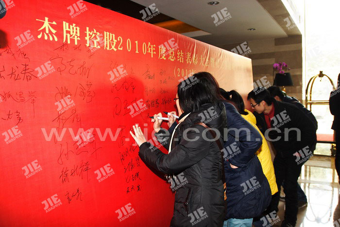 2011年01月30日,杰牌控股2010年度總結表彰大會暨員工答謝晚宴在蕭山航民賓館隆重舉行,會議對2010年度“杰牌形象獎、杰牌業績獎、杰牌精英獎、總裁獎”代表進行了表彰,并對優秀員工頒發了“杰牌汽車基金”、“杰牌住房基金”。大會會議通過“頒獎儀式、代表發言、部門工作報告、總裁工作報告、集體合同簽訂”等系列活動總結了2010年工作,明確了2011年目標,鼓舞了全體員工的信心和士氣,為十二五目標任務的完成奠定了扎實的基礎。總結表彰大會后全體員工參加了答謝晚宴,董事長&總裁陳德木先生致祝酒辭,晚宴在全體員工合唱《杰牌之歌》聲中推向高潮。